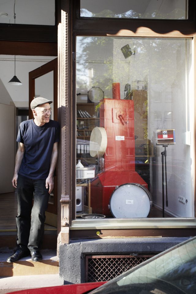 Die weiße Wand seines Altbauateliers versteckt sich hinter einem raumhohen dunkelbraunen Bücherbrett vollgepackt mit grauen Pappkartons. Auf einer der unzähligen Kisten steht „Berlin – Sinfonie einer Großstadt“, nebenan ruhen „Der Doktor Faust“ und zwei Bretter tiefer hat „Der Student von Prag“ seinen Platz gefunden. In den Pappkartons verstecken sich Notenpartituren, alte Zeitungsartikel, Tonmitschnitte, DVDs und viel weiteres Arbeits- und Recherchematerial. Thewes ist Komponist, die Vertonung von Stummfilmen sein Hauptarbeitsgebiet. Der gebürtige Saarländer kam zum Studium der Musikwissenschaft nach Mainz. Seit 2006 arbeitet er in seinem Atelier am Gartenfeldplatz. „Ich war früher schon oft hier an dem Platz, weil zwei Häuser nebenan im Hinterhaus viele befreundete Künstler wohnten“, erzählt er von seiner Studienzeit. Ganz früher war in den Atelierräumen das altehrwürdige Café Gerster, welches sich heute in der Klarastraße befindet. Seit sieben Jahren also arbeitet der 53-Jährige hier. Leute spazieren vorbei und grüßen ihn freundlich. „Den ein oder anderen hier kenne ich mittlerweile. Ich bin froh, das Atelier an dem Platz zu haben“, sagt Thewes, der nur ein paar Straßen weiter sein zuhause hat. Alle zwei Jahre öffnet er zum Neustädter Kunstwochenende „3xKlingeln“ seine Atelierräume für Neugierige, so auch wieder kommenden September.