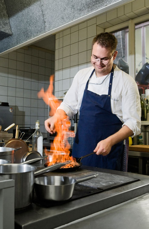 Über die meisten Lokale nördlich der Kaiserstraße sagt man, sie seien das Wohnzimmer der Neustadt. Auch Geberts Weinstuben gehören dazu, in diesem Fall ist es allerdings der feine Speisesaal der Großeltern: schick, aber gemütlich. Die Tester des Guide Michelin (die auch die Sterne vergeben) sahen das ähnlich und lobten das „klassisch-elegante Ambiente, verbunden mit familiärer Mainzer Gastlichkeit und schmackhafter saisonal geprägter Küche“. Nachzulesen ist das im „Bib Gourmand“, einem Führer, in dem Deutschlands beste Restaurants mit 3-Gänge-Menüs unter 34 Euro gelistet sind. Zum ersten Mal sind die Weinstuben Gebert dort vertreten, was für Freude bei Chefkoch Frank Gebert sorgt. Dass die Restaurantkritiker sich erst nach dem Essen zu erkennen gaben, verunsicherte ihn nicht. „Wir geben immer unser bestes, für jeden Gast“, betont er.