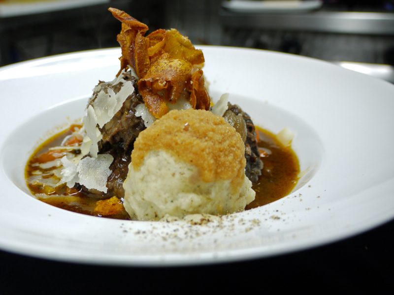 Das Boeuf Bourgogne serviert Franck mit Parmesan und Semmelknödeln. Sie können aber auch Butternudeln dazu reichen, wie auch in der Provence üblich.