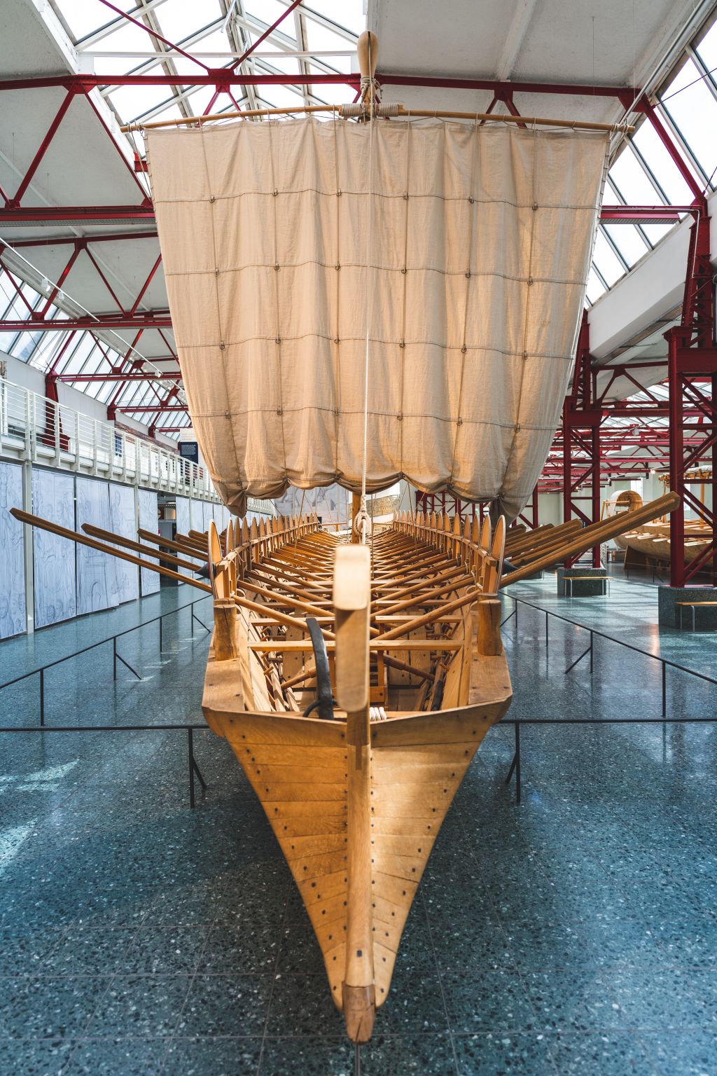 Als die hohe Zeit der Römer in Germanien zu Ende ging, wurde der Rhein zur wichtigen Grenze: Patrouillenschiffe befuhren den Fluss. Aus dieser Zeit, um 400 n. Chr., stammen die gut erhaltenen Überreste der fünf römischen Militärschiffe, die bei Bauarbeiten 1981/82 in der Nähe des Rheinufers ausgegraben wurden. Es waren schnelle, schmale Boote mit einer Ruderreihe rechts und links, die auch mit Segeln bestückt werden konnten und etwas breiter gebaute Patrouillenboote, die am römischen Kriegshafen entdeckt wurden. Andernorts fand man Reste von zwei älteren Lastkähnen, so genannten „Plattschiffen“, die für den Transport schwerer Waren bestimmt waren. Die sensationellen Funde waren den Mainzern ein eigenes Museum wert. Seit 1994 können im Museum für antike Schifffahrt in der ehemaligen Großmarkthalle nahe dem Bahnhof Römisches Theater nicht nur die originalen Funde, sondern auch originalgetreue Nachbauten im Maßstab 1:1 bewundert werden.