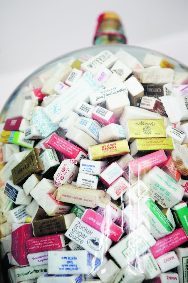 Sie trinkt ihren Kaffee ohne, ihr Mann nimmt ein wenig – dabei ist er in jeder Ecke des Bretzenheimer Reihenhauses gegenwärtig: Zucker. Von riesigen weißen Hüten über zahlreiche Würfel, Tüten in Schränken und Vitrinen bis hin zu mehreren mit Vorratsdosen bestückten Regalmetern – hier zuckert es gewaltig. Die Herrin darüber ist Marianne Dumjahn, eine begeisterte Zuckertütensammlerin. 1982 begann es mit harmlosen Urlaubsmitbringseln, heute schlägt eine gigantische Sammlung mit über 400.440 Tüten und Würfeln aus 145 Herren Ländern zu Buche. Stoff, aus dem Rekorde gemacht sind – dreimal stand Marianne Dumjahn damit im Guinnessbuch der Rekorde, letztmalig 2002. Neun Jahre später verkündete der Verlag neues Zahlenwerk. Ein deutscher Sammler hatte satte 6.991 Exemplare zusammengetragen, wurde im Jahr darauf jedoch von einer Amerikanerin getoppt: 9.596 Stück. Weniger Bestmarken, mehr schlechter Witz. „Rekorde kann man nicht unterbieten“, empörte sich die Bretzenheimerin, forschte nach, bekam eine nur schwer verdaubare Erklärung aufgetischt: Die Hamburger Verlagsredaktion sei zwischenzeitlich nach London umgezogen, habe ihr Archiv in Deutschland gelassen und die ses sei derzeit nicht zugänglich. Damit wäre ihr Rekord leider nicht verifizierbar. So enttäuschend dies alles sei, noch einmal wolle sie sich nicht bewerben. Zu viel Papierkram.