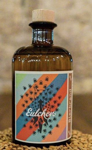 Kommen wir zu unserem letzten „Entwickler“, der eigentlich vor allem auf dem Biermarkt bekannt ist und erst dadurch zum Schnaps kam: Eulchen. „Von der Bachelor-Arbeit zur Brauerei“, fasst Gründer Philipp Vogel die Geschichte zusammen. Und all das war eher ein Versehen als geplant. Mit seinem Partner, dem gebürtigen Mainzer Leonidas Lazaridis, hat der heute 32-Jährige 2013 seine Abschlussarbeit als Kommunikationsdesigner über Bier und die Mainzer Biergeschichte geschrieben. Denn „historisch betrachtet war Mainz eine Bierstadt“. Vor 50 bis 100 Jahren hat es hier laut Philipp bis zu 100 Brauereien gegeben, manche zählten zu den größten in Deutschland. Heute ist davon nicht mehr viel übrig. Die beiden ehemaligen Mainzer Studenten brauen seit 2013 unter dem Namen „Eulchen“ ihr eigenes Bier. Zunächst in anderen überregionalen Brauereien eingemietet, wird dieses nun an einem geschichtsträchtigen Ort hergestellt: auf der Kupferbergterrasse – hier haben die beiden Betreiber gut eine Million Euro für die großräumige, etwa 1.000 qm umfassende Produktionsstätte investiert. Mit einer 10 Hektoliter großen Brauanlage werden pro Jahr etwa 600.000 Flaschen verschiedener Sorten abgefüllt. Aus Bier holten die Eulchen-Chefs raus, was geht: Märzen, Helles, Pale Ale, Pils, Weizen, Alkoholfreies. Und dann irgendwann, fast als logische Folge, kam mit dem Bierbrand die erste Spirituose: „Es ist relativ naheliegend, aus Bier Schnaps zu brennen“, sagt Philipp. „Wir machen unser Bier fertig und statt es zu trinken, destillieren wir es noch mal.“ Der klare Bierbrand besteht also aus den gleichen Rohstoffen wie Bier, schmeckt aber nicht danach, sondern hat ein überraschend feines Aroma von Steinobst, Richtung Williams-Christ-Birne.