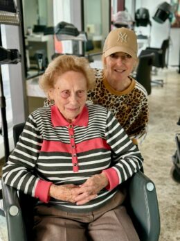 Mit 23 verlässt Angela das Großelternhaus, um auf ihren eigenen Beinen zu stehen. Sie übernimmt ihren eigenen Friseursalon in der Mainzer Innenstadt, heiratet – hat ihr eigenes Leben. Doch nie trennt sie sich emotional von ihrer Oma. Anneliese und Angela telefonieren jeden Tag zweimal, „jeden Morgen, wenn ich aus der Tiefgarage fahre, rufe ich meine Oma an und jeden Abend ruft sie mich dann nochmals zurück.“ Die beiden sehen sich außerdem regelmäßig. Neben festen Instanzen wie dem Samstagnachmittag, den sie immer gemeinsam verbringen, treffen sie sich auch an anderen Tagen, um das ein oder andere zu besorgen, über den Markt zu laufen oder einfach nur zusammen spazieren zu gehen. „Meine Oma bringt mich auch mal zum Nagelstudio und holt mich dort wieder ab“, erzählt Angela weiter. Anneliese Buba braucht die frische Luft, die Bewegung ist ihr sehr wichtig, „wer rastet der rostet. Ich bin bis vor ein paar Jahren noch täglich in den dritten Stock zu meiner Wohnung gelaufen.“ Anneliese Buba wohnt in einem Mainzer Seniorenheim und sie geht täglich raus, mal bekommt sie Besuch, mal läuft sie alleine. Mit ihren Mitbewohnern geht sie leider nur selten vor die Tür, denn diesen fehlt oft die Energie. Für alle Mitarbeiterinnen im Salon ihrer Enkelin ist Anneliese Buba einfach „die Oma“, eine feste Instanz und alle lieben sie. „Manchmal sehen wir sie nur von hinten die Straße entlanglaufen, manchmal kommt sie kurz rein und sagt Hallo und nicht selten hat sie auch schon einer zwanzig Jahre jüngeren Kundin beim Eintreten in den Salon geholfen“, sagt Angela weiter. Häufig nimmt die 51-Jährige ihre Oma auch abends mal mit nach Hause, um gemeinsam mit ihrem Mann und ihrer Oma zu kochen, „dann machen wir uns etwas ganz Feines und genießen die Zeit miteinander.“