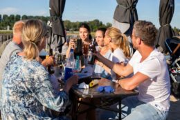 Einen besseren Standort hätte sich die Mole nicht aussuchen können. Auf einem eher kleineren Areal bietet die Gauls Catering GmbH & Co. KG seit sieben Jahren ein sonniges Plätzchen am Rhein. Das Motto „first come, first serve“ Ob an der Mole am Winterhafen zeigt bereits, wie beliebt dieser Platz ist. Jeder kann kommen und gehen und bleiben, so lange er möchte. Genügend Sitzplätze sind vorhanden und die Wartezeit gestaltet sich erträglich. Nur wer auf der Sommerlounge Platz nehmen möchte, muss sich etwas länger gedulden. Die Speisenauswahl changiert zwischen Salaten, Flammkuchen, Kuchen und Spundekäs.