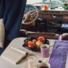 „Wenn ich losfahre, muss alles gut verstaut sein“, erzählt Anita während sie ihr Sofa umklappt und in einen Esstisch verwandelt, „sonst fliegt mir hier alles um die Ohren.“ Vier bis fünf Leute haben Platz in ihrer Kajüte. Und nicht nur deshalb fühlt man sich im Inneren von Knudsen (ein Wohnmobil ohne Namen bringt schließlich Unglück) wie auf einem kleinen Flussdampfer. „Jedes Mal wenn ein Auto vorbeifährt, schwankt hier alles mit, aber dann fühl ich mich wie zu Hause. Ich komme aus dem Norden. Mit Wind und Wasser geht’s mir gut.“