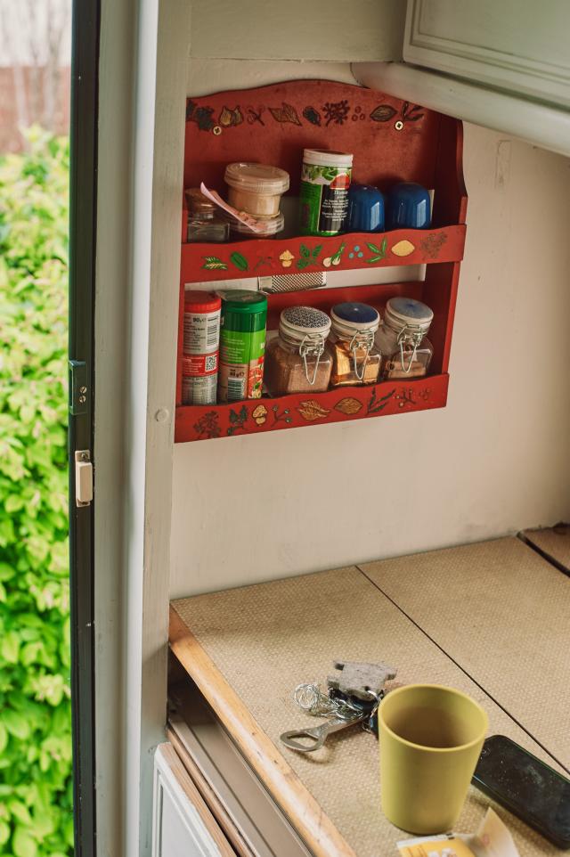 Außerdem an Bord: eine Elektro- und Gasheizung für kalte Nächte, ein Klapprad und Campinggeschirr aus Bambus. „Ich musste ganz genau abwägen, was mitkommen darf und was nicht. Tassen kann ich unterwegs zum Beispiel gar nicht gebrauchen, viel zu schwer.“ Auch auf einen Wasseranschluss muss Anita verzichten. Zum Kochen und Zähneputzen kauft sie Kanister an der Tankstelle. Spülen, Waschen und Duschen wird meistens improvisiert – auf der Arbeit, im Schwimmbad oder im Café um die Ecke.
