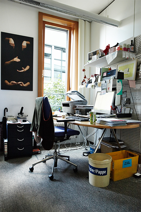 Mit grauer Löwenmähne und Björndal-Pantoletten trifft Manfred Geis das landläufige Bild des unabhängigen und freigeistigen Künstlertypen. „Früher Stüwaren die Haare noch länger. Dass mich die SPD damals direkt nach der Uni als Geschäftsführer überhaupt genommen hat, ist mir heute noch ein Rätsel“, schmunzelt er. Von seinem politischen Schwerpunktthema, der Kultur, ist es nur ein kleiner Schritt zur bildenden Kunst. Sie ist in seinem Alltag präsent, das bezeugen die vielen Bilder und Objekte in seinem Raum. Manche Stücke bleiben nach den Ausstellungen bei ihm hängen oder finden den Weg auf ein Regal. Zu jedem gibt es eine Geschichte. Mit Verweis auf den Respekt vor der Professionalität ist er selbst nicht kreativ tätig – das überlässt er den Künstlern. Und die gehen mit ihren Werken fünfmal im Jahr in seinem Mainzer Büro-Wohn-Schlafzimmer ein und aus. Dann nämlich wird es zur Galerie. Nicht als Eintagsfliege. Am 24. September eröffnet die 65. Ausstellung der „Kunst im Abgeordnetenbüro“. Diesmal mit einer Fotografin und Videokünstlerin. Das Publikum hat sich im Laufe der Jahre eher verjüngt, geblieben ist die lockere und unprätentiöse Atmosphäre. Auf eröffnende Grußworte als Zeichen der Wertschätzung für Künstler und Gäste, die oft von weit her kommen, verzichtet Geis dabei nie. Die lebendigen und angeregten Fachgespräche und Diskussionen an den Stehtischen auf dem Flur vor seinem Zimmer entwickeln sich anschließend von alleine. Und wie trifft er die Auswahl der Künstler? Mal wird er angesprochen, mal spricht er an. „Ich bin kein Galerist oder Kunsthistoriker, aber ich habe großes Interesse an zeitgenössischer Kunst“, erklärt Geis. Wichtig ist ihm allerdings, dass er eine Beziehung zu dem ausstellenden Menschen aufbauen könne. Ende September ist er zum ersten Mal beim Mainzer Kunstwochenende „3 x klingeln“ mit dabei – für ihn ein kleiner „Adelschlag“ und weiterer Beleg, dass ein Büro auch privater Lebensraum sein kann.