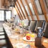 Treibt man sich zwischen Höfchen und Brand in der Innenstadt umher, wird man zumeist von der Menschenmenge getrieben und läuft vermutlich am Juwelier Wagner-Madler vorbei. Bei genauem betrachten des Hauses sieht man ein wenig, was das Innere verspricht: auf jeden Fall ist es alt. Doch tatsächlich analog zum Juwelier ein echtes Juwel, dass sich hier versteckt: ein kleiner Mainzer Geheimtipp im dritten Stock, den bisher oft nur die hohen Herren der Fastnacht auf ihren Ratssitzungen zu sehen bekamen. Der Senior-Juwelier und Ex-Präsident des Mainzer Carneval Vereins (MCV) Richard Wagner hat hier einen Ritter der Tafelrunde-Festsaal eingerichtet, in dem er gelegentlich zu rauschenden Soirées einlädt. Eine Wendeltreppe geht es hoch, dann begrüßt einen der Raum: länglich und schmal, die Tafel in seiner Mitte füllt ihn gut aus. Viel Holz offenbart sich: massive Balken stützen das spitz zulaufende Dach. Parkettboden veredelt die Atmosphäre und natürlich der zentrale Tisch, an den etwa 20 Gäste passen. Dazu strotzt der Raum vor Details: Die Wände sind von Sammlerstücken gesäumt, welche Richard Wagner überall auf der Welt erworben hat: Masken aus Venedig, Schmelztiegel, Beleuchtungen aus der Champagne, Bembel-Krüge und natürlich Fastnachtsorden en masse. Das Entdecken von schönen Dingen ist eine Leidenschaft des Juweliers, wen wundert es. Auch die eigentümlichen Kronleuchter, die an massiven Stahlketten von der Decke baumeln, stechen hier ins Auge: Es handelt sich um umgebaute Feuerkörbe. Und hinter dem Kopfende von „Gutenbergs Tafelrunde“ hat man – wie sollte es anders sein – einen tollen Blick auf den Mainzer Dom.