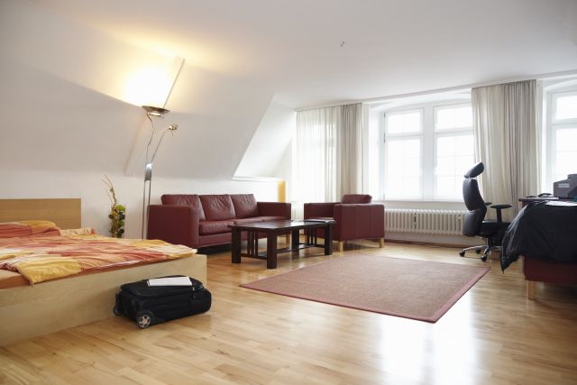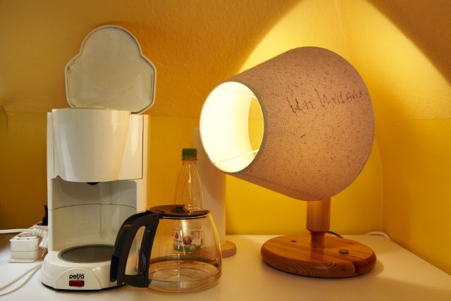 Früher diente die Wohnung als Speicher der benachbarten, ehemaligen Direktorenwohnung. Dieser Speicher ist heute mit Parkett und hellem Anstrich versehen und wurde so zur Stadtschreiber- Wohnung umfunktioniert; zu einem attraktiven 65 Quadratmeter großen und modernen Apartment in bester Lage – in einem historisch bedeutenden Gebäude. Gehobene, aber schlicht gestaltete Holzund Ledermöbel veredeln den Raum. Dazu kommen einige Kunstwerke aus der städtischen Kunstsammlung, dem Landesmuseum und Stadtarchiv. Die Einrichtung ausgewählt hat die zuständige ZDF-Redaktion gemeinsam mit dem städtischen Kulturamt. Es ist eine ansprechende Wohnung, doch ihr fehlt das Persönliche. Es gibt keine Familienfotos, keinen Kalender mit markierten Geburtstagen, keinen Wäschekorb und keine Pflanzen, beinahe wie in einem Hotel. Passend, denn das Haus „Zum Römischen Kaiser“ diente lange Zeit auch als solches. Bleibt hier jeder Bewohner also nur Gast? Stadt-Sprecher Ralf Peterhanwahr sieht das nicht so. Er weiß: „Die meisten Stadtschreiber haben die Wohnung dauerhaft genutzt.“ Die vergangenen beiden eher sporadischen Nutzer seien „in der Gesamtschau der 29 Jahre eher eine absolute Ausnahme, die nur auffällt, weil es ausgerechnet die letzten zwei und der aktuelle Stadtschreiber sind.“ Ilija Trojanow (Stadtschreiber 2007) habe sogar seinen Wohnsitz in der Stadtschreiber-Wohnung angemeldet. Und wenn man genau hinsieht, entdeckt man wenige individuelle Gegenstände. Wie zum Beispiel eine seltsam geknickte Lampe, die so gar nicht zu der übrigen Einrichtung passen will. „Die markante Leselampe mit dem quergestellten Schirm haben wir auf Wunsch von Urs Widmer und Katja Lange-Müller erhalten“, sagt Peterhanwahr.