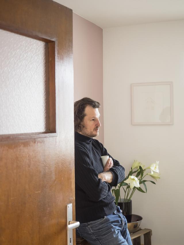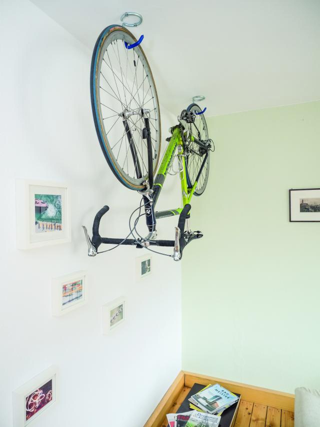 Ein schmucker Gasherd findet neben verschiedenen IKEA-Anrichten Platz, das Ganze überdacht mit einer kernigen Schreiner-Arbeitsplatte. Matthias kocht viel und gerne, der Kühlschrank ist gut gefüllt. Passende Kräuter kommen vom kleinen Balkon, ein zweiter Balkon befindet sich hinten im Schlafzimmer. Dieses ist ebenfalls nüchtern möbliert: „Das Bett habe ich selbst aus Paletten gebaut.“ Hier stört eigentlich nur noch der Fluglärm am Horizont. Gegenüber vom Schlafzimmer liegt die „Rumpelkammer“, das einzige Zimmer, das nicht durchgestylt ist und in dem sich alles befindet, was bisher noch keinen festen Platz in der Wohnung gefunden hat. Etwas Chaos, wenn auch versteckt, darf es dann beim Architekten doch auch mal sein.