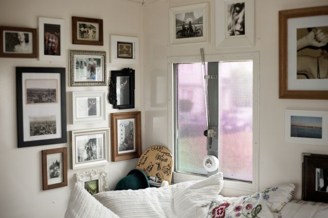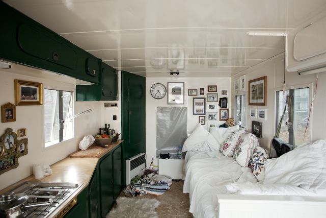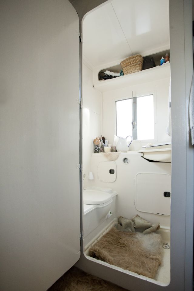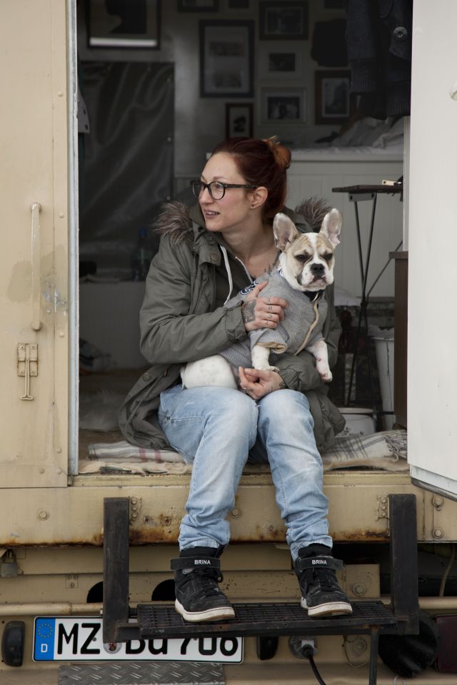 Das Paar teilte sein „Vermögen“ und ihr Mann gab ihr den Tipp: „Jetzt mach erst mal mit dem Geld, was du schon immer machen wolltest.“ Was also ist das? Brina nahm all ihren Mut zusammen, kündigte ihren Job, ihre Wohnung und kaufte sich im September einen ehemaligen Getränkewagen. Der 4,5 Tonner gehörte vormals einem Kite-Surfer und war so bereits wohnlich ausgebaut, vor allem Küche und Bad inklusive. Dennoch musste sie einiges reinstecken, Fußböden raus, neue Einrichtung rein. Dabei half ihr neuer Weggefährte Alex und dessen Vater, ein Hausmeister mit reichlich Werkzeug und Ideen. Nun wirkt das Interieur Mädels- mäßig und erinnert an das Café „Annabatterie“ in der Neustadt: hölzerne Schubladen, viele Fotos überm Bett, alles klein auf fein untergebracht. „Eigentlich ist es eine Miniaturausgabe meiner Wohnung“, sagt Brina und irgendwie scheint der Stil erst mal nicht zu der voll tätowierten Lady zu passen. Sie dazu nur schmunzelnd: „Das täuscht. Die meisten Tätowierten, die ich kenne, sind in Wirklichkeit ziemliche Weicheier, das sieht nur so hart aus …“ Weichei-tum kann Brina sich jedoch nicht erlauben, denn sie hat es mit handfesten Problemen zu tun: Fäkalien entsorgen, Wäsche zum Waschsalon bringen, Wasserkanister besorgen und Strom ist auch ein Dauerbrenner. Vor allem die Arbeit am Laptop zieht gut Energie und so müssen Kerzen zur abendlichen Beleuchtung glimmen. Sonst ist es aber heimelig warm im Wagen, eine Gasflasche sorgt für den nötigen Heizstoff.