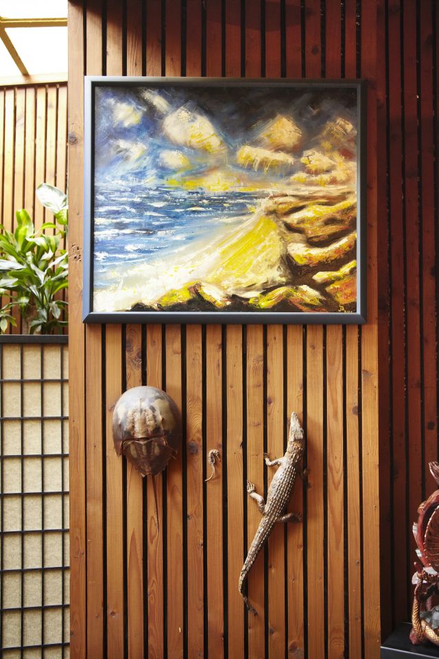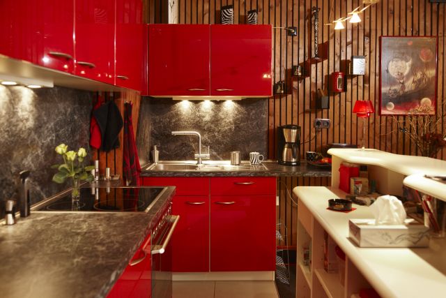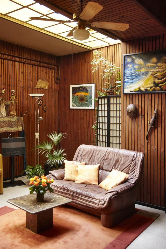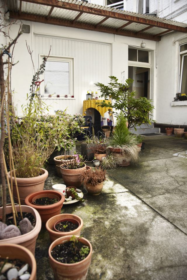 Vor zwanzig Jahren suchte Anne zusammen mit ihrem Mann eine neue Bleibe. Sie kamen, sahen und verliebten sich sofort in den unkonventionellen Wohnungszuschnitt. „Das war früher mal eine Backstube“, erklärt die gebürtige Bad Kreuznacherin. Einer der Vormieter hat die Wände mit schwarzer Folie verkleidet und Holzlatten darüber genagelt. Es sah gut aus und sie beließen es dabei. Die unorthodoxe Kombination unterschiedlicher Raumhöhen und das kurz aus der Decke ragende ringförmige Überbleibsel eines Abluftrohres entspringen Zeiten, als hier noch Mehlstaub und Gebäckduft umherschwurbelten. Der nachträgliche Heizungseinbau brachte das Stilelement sichtbar verlaufender Kupferrohre hervor. Unruhig im Gesamteindruck wirkt es aber nicht. Der Wohnbereich hinter dem Garagentorfenster beherbergt neben knautschigem Ledersofa und hohem Bücherregal auch in purer Verschwendung natürlicher Lichtquellen das große Oberlicht. Perfekt für die Zimmerpflanzen. Weiter hinten im Raum stehen Bett und Kleiderschrank – letzerer als optische Abtrennung zum Küchen-, Ess- und Arbeitsbereich. Dort braucht es schon Licht aus der Dose und das wird mit einer Kombination aus Energiesparbirnen und Bewegungsmeldern geregelt. „Wann immer es warm ist, steht die Wohnungstür meist offen“, sagt Anne, dann würde der Eingangsbereich auch heller. So sei beim Kochen auch immer ein kleiner Schwatz mit den vorbeigehenden Nachbarn möglich.