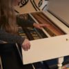Achim schlägt lieber härtere Töne in seinem Bandkeller an, der durch Schallschutztüren von Beates Bereich getrennt ist. Gitarre, E-Gitarre und E-Bass hängen hier an den Wänden. Auch digitales Schlagzeug steht auf der Tagesordnung. Seine Schüler spielen alles zwischen Jazz und Metal. Die Hightech-Instrumente können ihren Sound auf Boxen oder Kopfhörer abgeben – so müssen die Nachbarn nicht zwingend leiden. Per Knopfdruck wird der Klang der digitalen Schlagzeuge variiert: egal ob klassisch, Jazz, indisch oder synthetisch. Auch ohne Drummer spielt das Gerät einen Rhythmus, der Achims Gitarrenspiel begleitet. „Als Gitarrist braucht man Fingerspitzengefühl. Das ist nicht für jeden etwas“, improvisiert er lässig eine Melodie auf seinem Instrument. Sein Spezialgebiet ist die Jazzgitarre. Im eigenen Musikverlag (Name: „Klangfarbe“) bringt er Lehrbücher heraus, mit diversen Grifftabellen. Zusätzlich produziert er im Nebenraum Erklärvideos für seinen YouTube-Kanal.