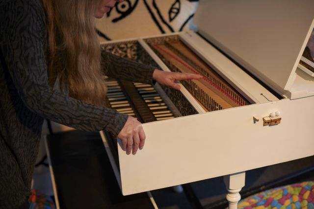 Wer Beate Hassinger und Achim Kohl in einer ruhigen Minute erwischt, hat Pech. Denn Stille ist selten in ihrem Haus, das sie mit zwei Rauhaardackeln bewohnen und gleichzeitig zum gemeinsamen Arbeitsplatz gemacht haben. Das Paar lebt für die Musik. Über sie haben sie sich kennengelernt und mit ihr haben sie ihre Existenz aufgebaut. In ihrer kleinen Musikschule „Klangfarbe“ treffen Welten aufeinander: „Ich habe mich schon als Kind nur für sehr alte Musik begeistert“, erinnert sich Beate. Sie lehrt Blockflöte und Klavier im Erdgeschoss und führt uns in ihren Unterrichtsraum. „Wenn man von Blockflöten erzählt, wird man oft belächelt. Sie hat den Ruf als Kinderinstrument weg.“ Gut zwei Dutzend Flöten in allen Farben und Größen befinden sich hier. Von der schrillen, winzigen „Garkleinflöte“ bis zur mannsgroßen Kontrabassblockflöte (Preiskategorie halber Kleinwagen) und exotischeren Ausführungen wie einer Gemshornflöte, die aus einem einzigen Horn geschnitzt ist. Mit der bekannten Grundschul-Flöte haben diese Instrumente kaum etwas gemein. Beate bringt vor allem barocke Töne zum Klingen, begleitet von Flügel oder Cembalo. „Im Barock hatte die Blockflöte ihre Hochzeit“, weiß die studierte Musikpädagogin,