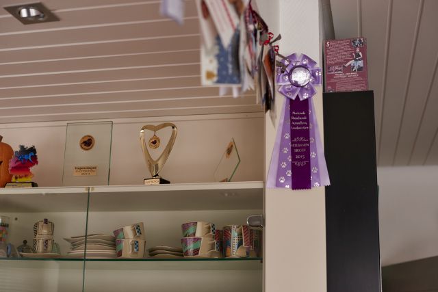 Vom Unterrichtsraum gelangt man in das offene Wohnzimmer mit großer Glasfront. Obwohl ursprünglich als Wintergarten gedacht, haben sie einen vollwertigen Raum daraus gemacht, damit man zu jeder Jahreszeit davon profitieren kann. Beates und Achims Begeisterung für Vierbeiner ist überall im Haus wiederzufinden: In den Regalen reihen sich Figürchen und Bilder. Im Wohnzimmer thronen Pokale und Auszeichnungen diverser Wettbewerbe. Zuletzt zeigte sich ihr aufgeweckter Rauhaardackel Giacomo auf der Welthundeschau in Leipzig. Als deutscher Champion hat er einige Preise verliehen bekommen – und nicht wenige Hundedamen beglückt. Kollege Festus, ein paar Jahre mehr auf dem Buckel, hat die Karriere bereits niedergelegt. In den Mainzer Vorort ist die „Familie“ gut eingebettet. Beates Elternhaus steht nur wenige Straßen entfernt. „Meine Mutter war hier Hebamme. Viele meiner Nachbarn hat sie selbst zur Welt gebracht“, lacht sie. Die Gonsenheimer kennen sich gut. Man fühlt sich als Dorfgemeinschaft. Beates Schüler bespielen regelmäßig Seniorennachmittage und das Erdbeerfest. Nur Achim hadert noch manchmal. Besonders Fastnachtssitzungen haben es ihm nicht gerade angetan. „Aber es gehört nun mal dazu“, gibt er schulterzuckend zu, „gibt ja wirklich Schlimmeres.“ Wir glauben ihm.