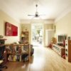 Dass diese Idylle nicht immer so war wie heute, davon kann Nico ein Lied singen. Denn die 85qm Wohnung war früher eigentlich gar keine Wohnung. Als das Haus während des Krieges dem Bombardement zum Opfer fiel, standen nur noch die Grundmauern und das erste Stockwerk. Zwei weitere Stockwerke wurden nach dem Krieg neu errichtet, das Erdgeschoss fungierte solange als Büro für eine Architekturfirma. Hier gab es weder ein ordentliches Bad, noch die Raumaufteilung in der jetzigen Form. Nur die eigentliche Perle – der kleine Garten im Hinterhof – ganz allein für den Mieter des Erdgeschosses, der war schon immer da. Auch schon früher, als das massive Sandsteinhaus wahrscheinlich einem Bierbrauer gehörte, wie ein Wappen am Türeingang noch heute zeugt.