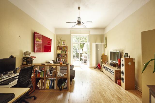 Als das Architekturbüro 2007 auszog und die Räumlichkeiten zum Verkauf standen, waren Nico und seine damalige Frau (von der er heute geschieden ist) die ersten zur Besichtigung – ein Zufall. Sofort nach dem Anblick des hauseigenen Gartens schlugen sie beherzt zu. Wohl wissend, dass auf sie noch jede Menge Arbeit wartete: Wände mussten eingerissen werden, neue Durchgänge geschaffen und Wasserleitungen im Keller verlegt. Die Wohnung wurde von Grund auf mit Köpfchen saniert. Vor allem für die Elektrik kamen dem gelernten Kommunikations-Elektroniker seine Kenntnisse zugute. Aber auch befreundete Schreiner ließen sich nicht lumpen. Das Parkett wurde komplett abgeschliffen, die Wände verputzt.