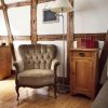 Der alte Esstisch aus hellem Holz, im größeren der beiden Räume, drum herum Stühle mit Sitzen aus Binsengeflecht, ist zugleich auch Arbeitstisch. Eine Chaiselongue, ein großer Weichholzschrank, daneben Regale. Viele Bücher, aber nicht alle passen in die Borde. „Ein Teil liegt unterm Bett“, gesteht der Autor. Der Stuck an der Decke, ungewöhnlich für ein Fachwerkhaus, ist ein Hinweis darauf, dass das Haus, obwohl klein, doch mal „was Besseres“ war.