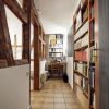 Mit Raffinesse und Hilfe eines Freundes wurde aus dem 95 cm breiten Schlauch ein komplettes Bad mit Waschbecken, Wanne und WC. Das Klo auf halber Treppe, an das noch eine Tür erinnert, hatte ausgedient.Vom „neuen Luxusbad“ führt die eine Tür zum Arbeits-, Ess- und Wohnraum, durch die zweite gelangt man ins Schlafzimmer. Mehr als ein großes Bett ist hier „nicht drin“. Aber: „durch diesen „Rundlauf“ wirkt die Wohnung größer als sie ist“, kommentiert der Schriftsteller sein „Boot“.