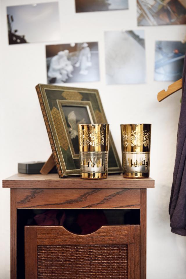 Die Dachwohnung der hübschen Frau mit den dunklen Augen ist sozusagen fest in Familienhand, wie überhaupt weite Teile des Hinterhauses. „Mein Vater hat sich einmal von oben nach unten durchgewohnt“, erzählt sie lachend. Und dabei in jedem Stockwerk etliche Arbeiten in Sachen Funktionalität und Verschönerung getätigt. Ein Teil der 2-Zimmer-Wohnung liegt vor der eigentlichen Eingangstür: Am oberen Ende des schmalen Treppenhauses fällt der erste Blick auf eine kleine Kommode, über der ein Spiegel hängt. „Hier sind meine Schals drin“, erklärt Nikan mit einem Griff nach der Schublade und streicht kurz über die bunten Stoffe.