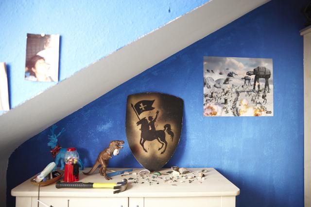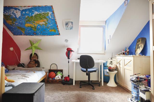 „Die Küche hat mein Vater hierhin umgebaut, seither hat die Wohnung ein zweites Zimmer“, erzählt Nikan, während sie die Führung fortsetzt. Im besagten Zimmer wohnt an den Wochenenden der zehnjährige Sohn der gebürtigen Iranerin, die als junge Frau länger in Kaiserslautern gelebt hat. Gemeinsam sind die beiden im Winter 2012/13 hier unters Dach gezogen. „Ich wollte immer gerne in der Wohnung wohnen. Mir gefällt, was mein Vater daraus gemacht hat. Allerdings hat sie keine richtige Heizung, und in diesem Winter wurde es dann noch wahnsinnig kalt.“
