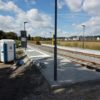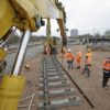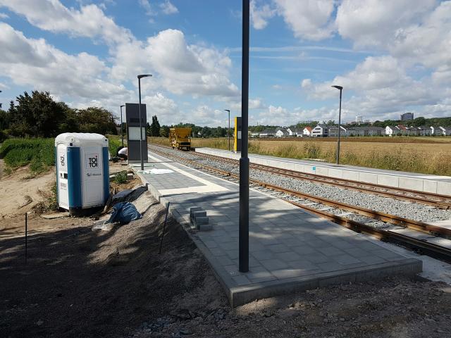 Zurück nach Mainz. An den neuen Haltestellen befinden sich nun längliche Informationsstelen, in die alle wichtigen Funktionen integriert sind: vom Schaukasten für die Fahrpläne über die elektronische Anzeige bis hin zu einem Lautsprecher und einem Knopf, mit dem Rollstuhlfahrer barrierefreien Einstieg anfordern können. Die letzte der zehn bestellten Variobahnen wurde am 28. Oktober angeliefert. Im Zeitlupentempo rollte das 30-Meter-Fahrzeug vom Tieflader aufs Gleis vor dem Straßenbahndepot. Hier erhielt der Triebwagen seinen letzten Feinschliff.