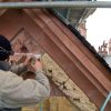 Steinersatzmassen sind Mörtel, zumeist auf Zementbasis, die anstelle von Natursteinteilen eingesetzt wurden. Da diese Mörtel weder die Struktur noch die gleiche Wasserdurchlässigkeit des Natursteins haben, setzen sie sich trotz vorschriftsmäßiger Verarbeitung nach kurzer Zeit vom umgebenden Naturstein ab. Für die Dombauhütte steht seit dem fest: „An die Außenfassade und Natursteine lassen wir keine Fremdfirmen mehr ran. Es hat sich gezeigt, dass wir mit unserem selbst gesteckten Qualitätsanspruch langfristig besser fahren“, erklärt Walter. Geld und Zeit dürfen in dem Fall keine Rolle spielen: Was zählt ist die Qualität und das Ergebnis.