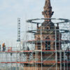 Am West-Turm des Doms wird in den nächsten Wochen erst mal die Fassade gereinigt, danach kommen die Denkmalpfleger und Kunsthistoriker, die die Schäden analysieren und aufnehmen, erst zum Schluss sind die Steinmetze dran, die dann von oben nach unten den Dom – wenn es sein muss – Stein für Stein auf Vordermann bringen.