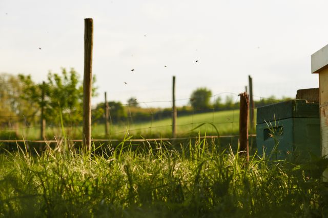 „Ich werde eigentlich jedes Mal gestochen, wenn ich hier bin“, sagt Matthias Hermes und schnickt lässig einen Bienenstachel weg, mit dem eine Biene gerade seinen Finger attackierte. „Daran gewöhnt man sich.“ Am Ortsrand von Marienborn, sportliche 15 Minuten Mainzelbahnfahrt vom Hauptbahnhof entfernt, bietet sich eine Szene wie aus Bullerbü: Im Schatten eines Kirschbaums stehen sechs Beuten (ein etwas barbarischer Fachausdruck für die hölzernen Kästen, die jeweils ein Bienenvolk enthalten). Im Hintergrund nur weite Wiesen, Kastanienbäume und der rheinhessische Sonnenuntergang. Zwischen Stadt und Hinterland fliegen Matthias Hermes „Borner Bienen“, die pro Jahr und Volk zwischen 30 und 35 Kilo Honig abwerfen.