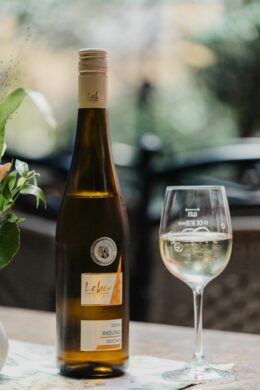 Nicht ganz überraschend findet man im Weinangebot der Gutsschänke ausschließlich hauseigene Produkte vom Weingut Stefan Leber, was in der Tat kein Nachteil ist. Das Weingut ist mehrfach ausgezeichnet worden als „Haus der prämierten Weine“. So sind denn auch viele der Weine mit der Kammerpreismünze Rheinland-Pfalz in Gold und Silber dekoriert. Daneben hat Volker Mayer aber auch an bierdurstige Kehlen gedacht und schenkt Bitburger Pils oder Paulaner Hefeweizen aus. Kurzum: Der Gutsausschank im Weingut ist ein Geheimtipp für Freunde der gut-bürgerlichen Küche mit gutem Preis-Leistungsverhältnis. Ausreichend Parkplätze sind vorhanden und mit der Straßenbahnlinie 50/53 (Endhaltestelle Bürgerhaus Hechtsheim) ist man ebenso nah dran.