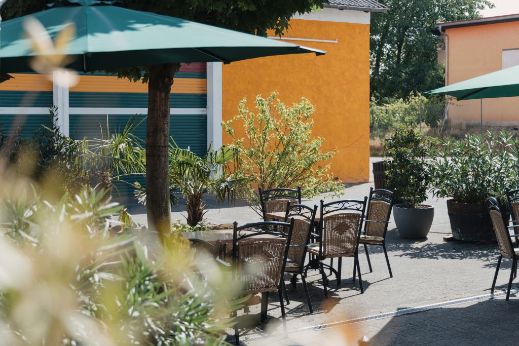 Georgshof – Gutsausschank Georg Leber steht in großen Lettern auf der Häuserwand. Seit vielen Jahren ist der Ausschank ein beliebtes Ausflugsziel an der Ortsrandlage von Mainz-Hechtsheim. Das eigentliche Weingut wird von Stefan Leber geleitet. Die ehemalige Gutsschänke ist verpachtet und liegt seit 13 Jahren in den bewährten Händen von Volker Mayer, der schon immer eine Restaurant- Leidenschaft hatte. Nach zwei Stationen in Marienborn und Gonsenheim lernte er Stefan Leber in dessen Hechtsheimer Weingut kennen, und schnell war klar, dass Volker den Gutsausschank übernimmt. Die Aussicht, einen solchen bei einem ausgezeichneten Winzer aufzubauen, klang sehr verlockend.