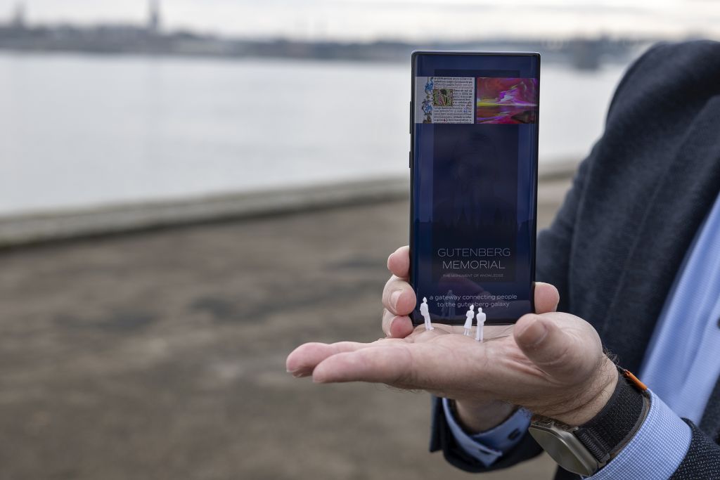 Umgang mit dem Erbe Gutenbergs in einer durch und durch digitalisierten Welt aufkam: „Dass wir heute ganz selbstverständlich vom ‚Man of the Millenium‘ sprechen, hat viel mit den Entwicklungen zu tun, die bis in unseren heutigen Alltag reichen.“ Längst breche die Gutenberg-Welt auch ein Stück weit zusammen, zumal das auf Papier gedruckte Wort im Zuge der Digitalisierung nicht mehr einzig als Speicher für nachkommende Generationen von Bedeutung ist. „Ich erinnere, als Angela Merkel 2019 ihren Facebook- Account löschte. Gleich daraufhin wurde die Kritik laut, dass damit auch historische Erinnerungen für immer gelöscht werden“, so Knapp, der vor allem ein Problem in der Haltbarkeit von bekannten Speichermedien sieht: „Was passiert, wenn ein Rechenzentrum vom Netz genommen wird? Wissen wir, ob es in den nächsten Jahrzehnten noch Facebook geben wird?“ Immer wieder habe bereits die UNESCO dazu aufgefordert, sich über eine adäquate Lösung zur Sicherung von Daten Gedanken zu machen, um das Wissen an nachkommende Generationen weiterzugeben. Gregor Knapp sieht mit seiner Idee von einem „Gutenberg- Memorial“ hierin eine große Chance, Wissen auf Glas zu speichern. Nicht größer als eine Zwei-Euro-Münze sei so ein Ewigkeitsspeicher, der bis zu 500 Terabyte Platz biete. Derzeit laufen die Forschungen, an denen auch Microsoft beteiligt sei, so Knapp. Das „Gutenberg-Memorial“ wäre die Heimat für diesen gigantischen Speicher. Knapp, der nicht nur Fan von Johannes Gutenberg, sondern auch von Stanley Kubrick ist, schwebt ein Bau in der Form eines Monoliths vor, der an den Film „A Space Odyssey“ des Regisseurs erinnert. Bei Kubrick tauche dieses Monument immer dann auf, wenn eine besondere Errungenschaft für die Menschheit sichtbar werden soll. Etwas erinnert der Bau dann doch an den verschmähten „Bibelturm“, wenn er auch kompakter geplant ist. Knapp könnte sich als Standort das Rheinufer auf Höhe des Kaisertors vorstellen. Eine besondere Bedeutung hätte das Memorial außerdem für Mainz als Standort des Unternehmens Schott durch das Thema Glas, das nicht nur für die Ewigkeitsspeicher, die permanent bespielt werden, eine wichtige Rolle einnehme. Eine Umhüllung aus OLED-Bildschirmen könnte eine Projektionsfläche nach außen schaffen: „Kunstwerke oder Zitate könnten darüber abgespielt werden. Ein bisschen wie das größte Smartphone der Welt.“