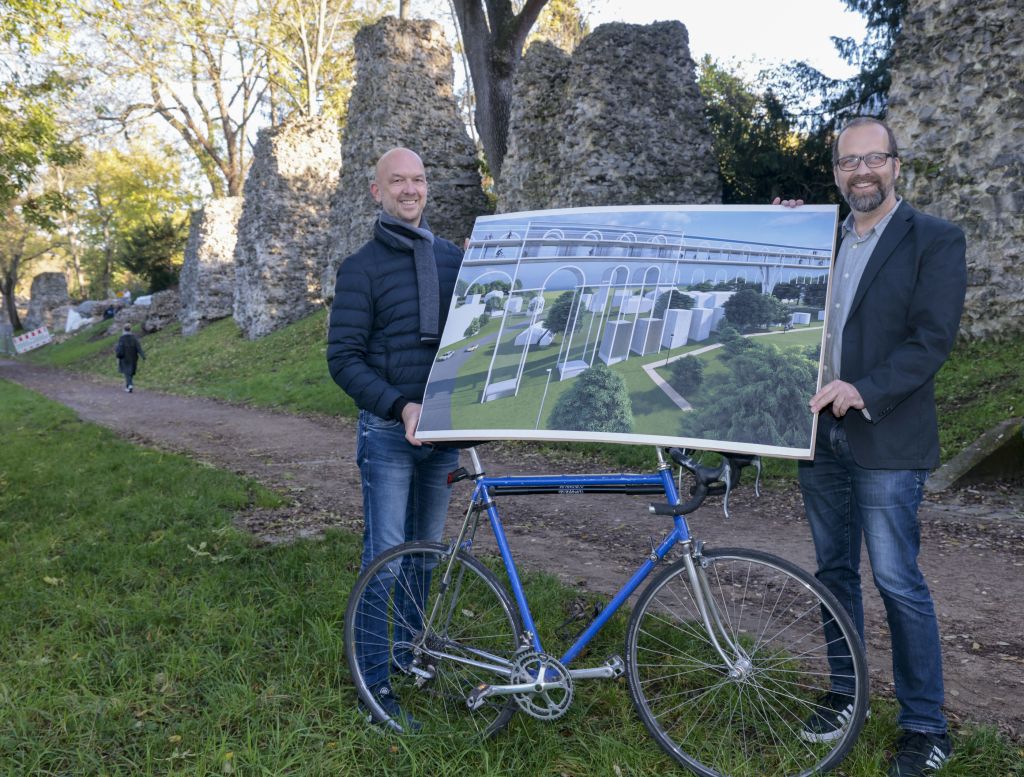 Die Idee einer Fahrradbrücke, die über das Zahlbachtal führt, habe ihn einfach nicht mehr losgelassen, sagt der Mainzer Architekt Axel Efferth. Die Vision, die er seit gut eineinhalb Jahren mit dem Journalisten Philipp Müller vorantreibt, hat es in sich: Das Konzept trägt den Namen „Velodukt“ und ist als Brückenschlag zwischen zwei Welten zu verstehen. Durch die Adaption der römischen Bauweise soll oberhalb der historischen Römersteine im Zahlbachtal die Form eines Aquädukts aufgenommen und mit den Anforderungen an ein modernes Verkehrskonzept neu in Szene gesetzt werden. Im Mittelpunkt steht dabei die schnelle Erreichbarkeit des geplanten Science- City-Quartiers über die Fachhochschule und die Uni bis zum Universitäts-Klinikum und