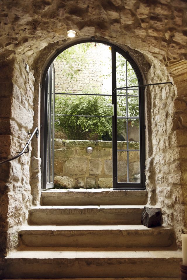 Ein geschnitzter Balken fand sich am Hintergebäude. Er gehörte zu einer Synagoge und ist auf 1619 datiert. Farbig gefasst wie ehedem, wurde er an der Hausecke originalgetreu restauriert. „Ziemlich zu Beginn der Arbeiten wurde das Haus unter Denkmalschutz gestellt“, berichtet der Hausherr, „anfangs gab es noch Zuschüsse. Aber später dann…“ Für Entdeckungen war das historische Gemäuer jedoch weiterhin gut: Im Keller fand das Paar unter dem Gewölbe ein zweites mit Wasserbecken. „Vermutlich eine Mikwe, ein jüdisches Ritualbad“, sagt Dechent. Eine dicke Glasplatte im Boden gewährt einen Blick in die Tiefe. Dazu kam noch ein Brunnen im vorderen Kellerteil, sieben Meter tief, gefüllt mit klarstem Wasser! Der ist nun auch mit einer Glasplatte bedeckt. Stolz präsentiert Mario diese und andere Funde, die er zu Tage förderte: „Hier ein Topf aus dem 16. und da ein Becher aus dem 13. Jahrhundert.“ Viele Fundstücke stellten sie dem lokalen Heimatmuseum zur Verfügung.