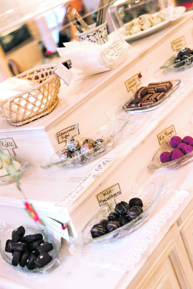 Eine davon ist die Schokophonie in der Mainzer Altstadt. Der Laden von Gisela Dittmar und Friedel Weinel wirkt wie aus der Zeit gefallen. Liebevoll eingerichtet mit alt wirkenden Möbeln und wohin man schaut süße Köstlichkeiten. Ob Pralinen, wild gegossene Tafeln oder ein kunstvoll geformter Schoko-High Heel – ein Erlebnis für jeden Schokoladen-Liebhaber. Wer „nur mal gucken“ will, findet sich schnell mit einem Stück Schokolade zur Verkostung wieder oder mit einer heißen Schokolade in der gemütlichen Sitzecke.