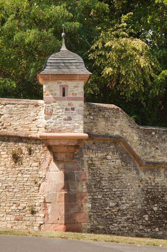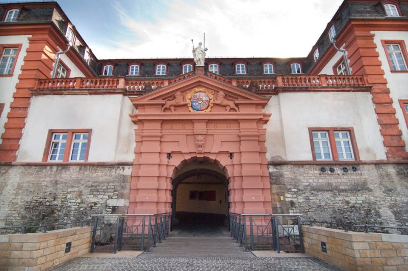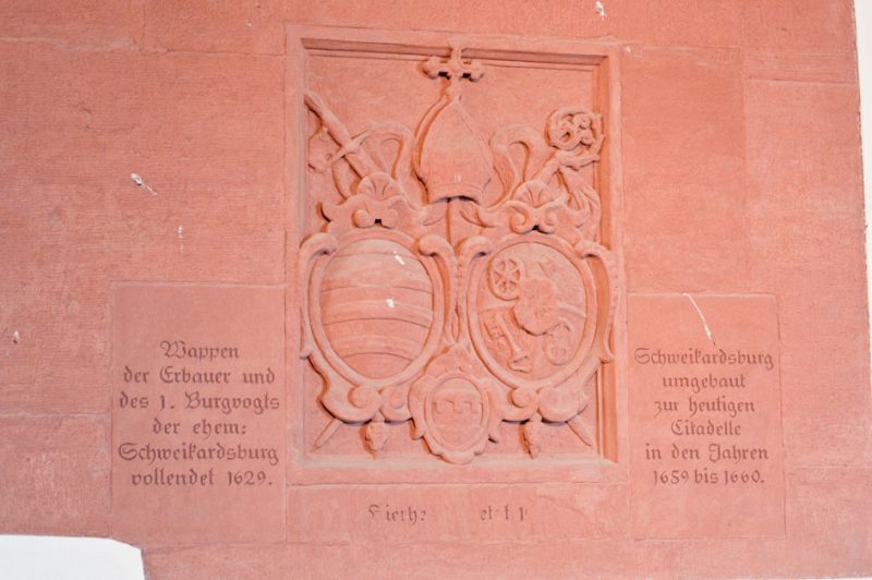 Um Mainz nach dem Krieg sicherer zu machen, lässt Kurfürst Johann Philipp von Schönborn 1655 die Stadt mit Bastionen nach französischer Bauart umwallen. So entstehen viereckige Zitadellen, wie wir sie heute kennen. Sie ermöglichen einen umfassenden Überblick und vermeiden tote Winkel. Der Begriff „Zitadelle“ kommt aus dem Italienischen „cittadella“, was „kleine Stadt“ bedeutet. Eine Zitadelle ist also eine Festung oder ein fester Platz, der besonders geschützt ist. Im Falle eines Angriffs soll sich die Garnison auf die Zitadelle zurückziehen können. Von Schönborn lässt 1660 auch das der Stadt zugewandte Haupttor auf der Zitadelle anlegen. Auffallend daran ist heute noch die einknickende Hofeinfahrt, die einen Angriff von außen erschweren soll. In der Mitte ließ von Schönborn ein so genanntes „Mordloch“ angelegen, aus dem heißes Pech geschüttet werden konnte. Da das dem Kurfürsten jedoch zu teuer ist, ordnet er an, über ungebetene Besucher einfach die Latrine zu entleeren.
